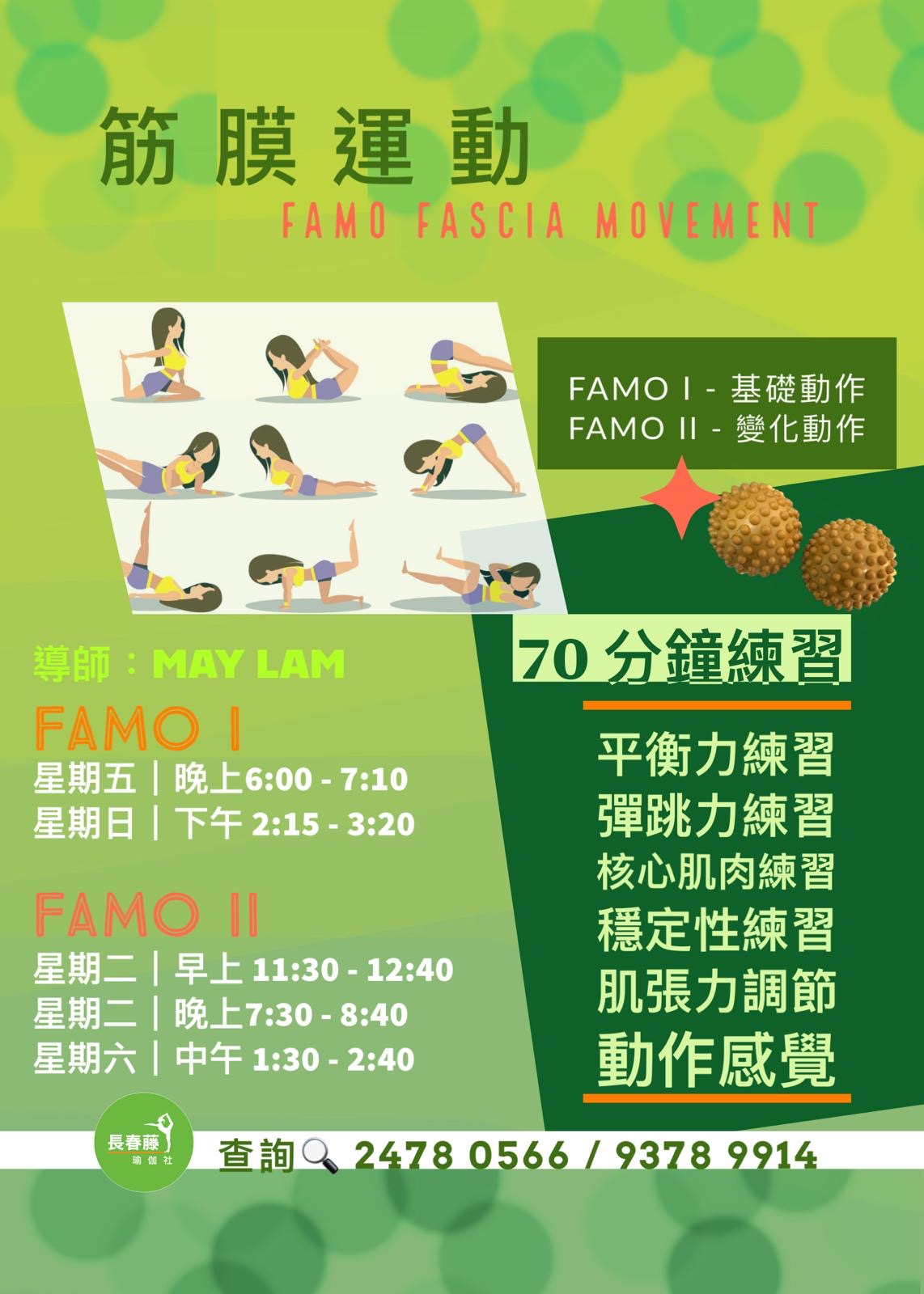 「FAMO 筋膜運動」-透過動態的練習和自我按摩相結合,增強全身活力和運動自由。這些多維序列可以舒緩或減輕疼痛,增強情緒和免疫功能,並促進健康和復原力。課程的與眾不同之處在於它專注於筋膜——人體最有影響力的結締組織系統。當筋膜狀況良好時,肌肉、關節、大腦和內臟器官,甚至腸道感覺,功能都會好得多。